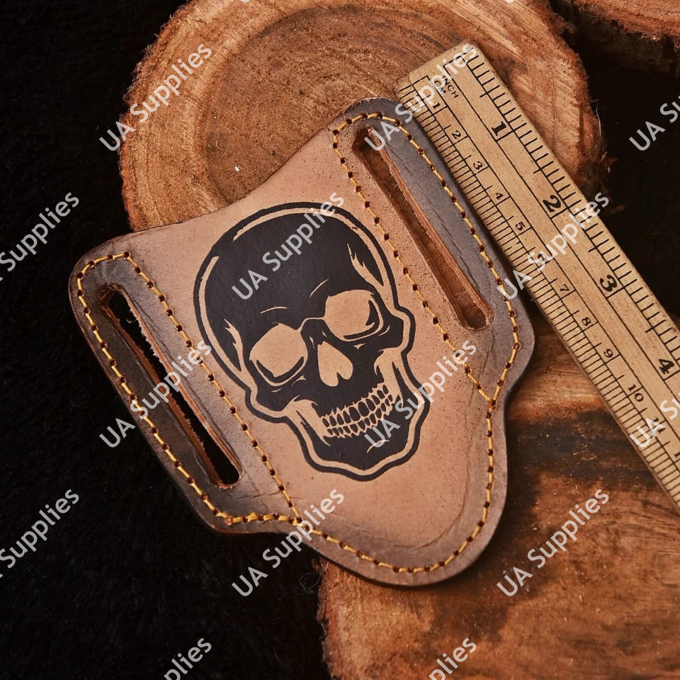 ปลอกมีดพับแบบแพนเค้กหนังแท้ สะพายแนวนอน ทำมือจากหนังวัวแท้ สำหรับพกพา EDC ราคาขายส่ง