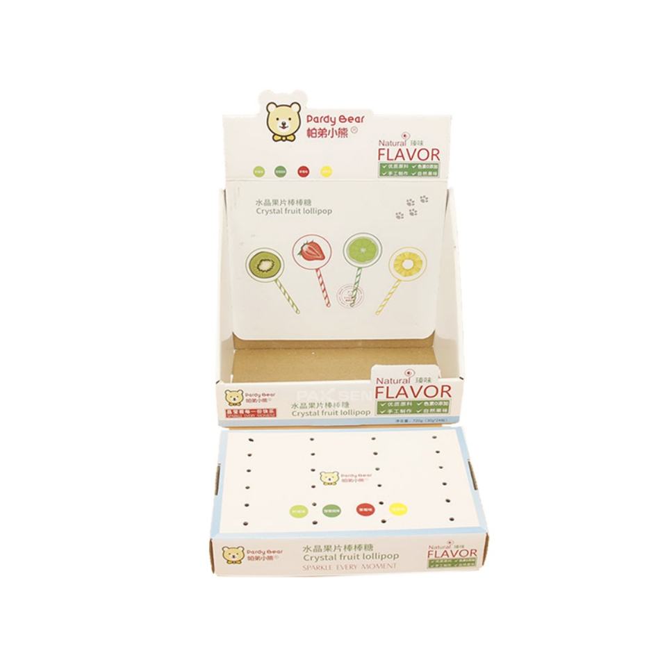 กล่องกระดาษแข็งแบบกำหนดเองสำหรับวางโชว์สินค้าช็อกโกแลตพร้อมจำหน่าย กล่องโชว์สินค้าอาหารจานด่วนบนเคาน์เตอร์