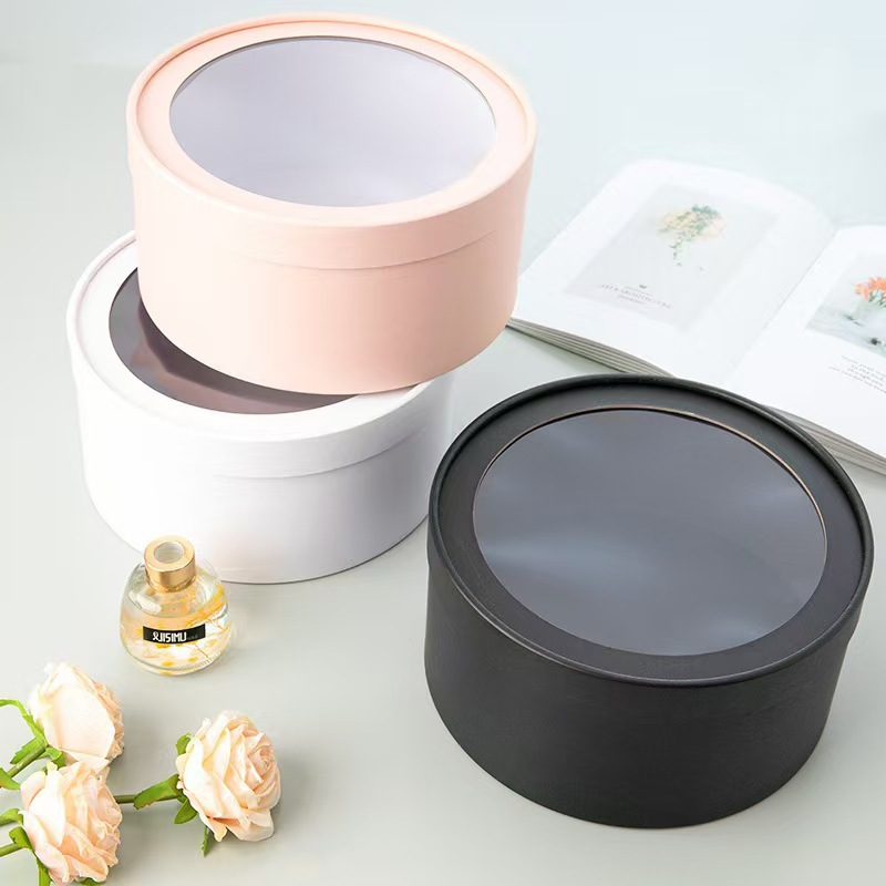กล่องบรรจุภัณฑ์ของขวัญหลอดกระดาษแบบกำหนดเองที่มีหน้าต่างใสอยู่ด้านบน