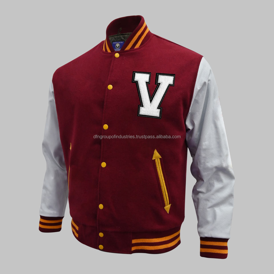 แจ็กเก็ตเลตเทอร์แมนทีมโรงเรียนแจ็คเก็ตขนสัตว์แขนหนังแท้สำหรับผู้ชายและผู้หญิง