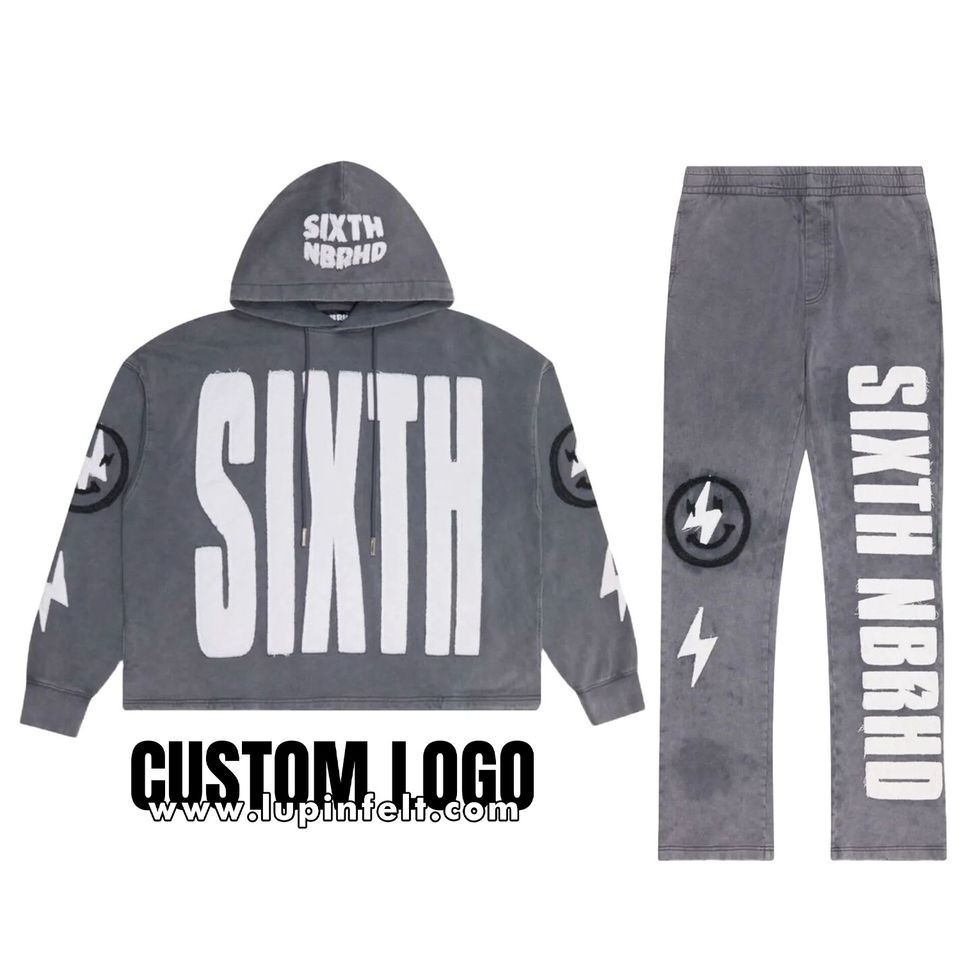 ชุดเซ็ตเสื้อฮู้ดครอปโอเวอร์ไซส์และกางเกงจ็อกเกอร์สไตล์วินเทจสำหรับผู้ชายและผู้หญิง แบบมีฮู้ดสำหรับฤดูหนาว งานปักลายแบบกำหนดเอง ชุดสองชิ้น