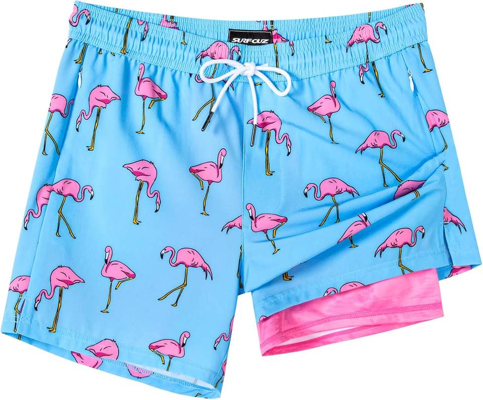 บอร์ดเล่นกระดานโต้คลื่นผ้าโพลีเอสเตอร์แห้งเร็วของผู้ชายกางเกงว่ายน้ำแบบสั้นระบายอากาศได้กันยูวีกันน้ำพิมพ์โลโก้เอวตามสั่ง