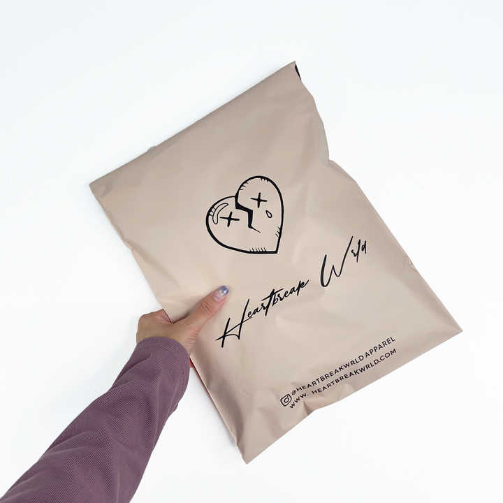 ซองพลาสติกพีชแบบกำหนดเองพร้อมพิมพ์โลโก้สีดำ ถุงส่งสินค้าแบรนด์เนมสำหรับธุรกิจอีคอมเมิร์ซเสื้อผ้าสำหรับธุรกิจขนาดเล็ก