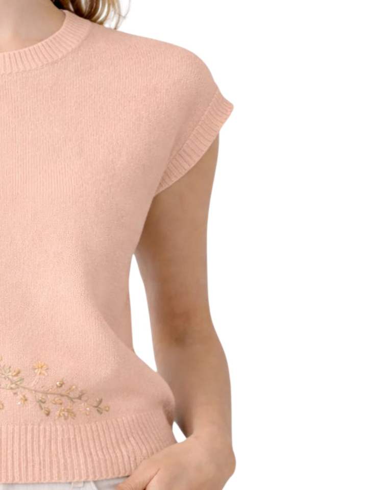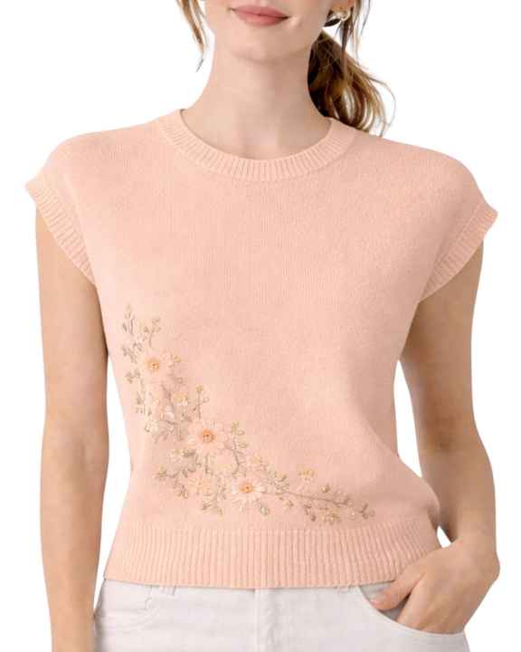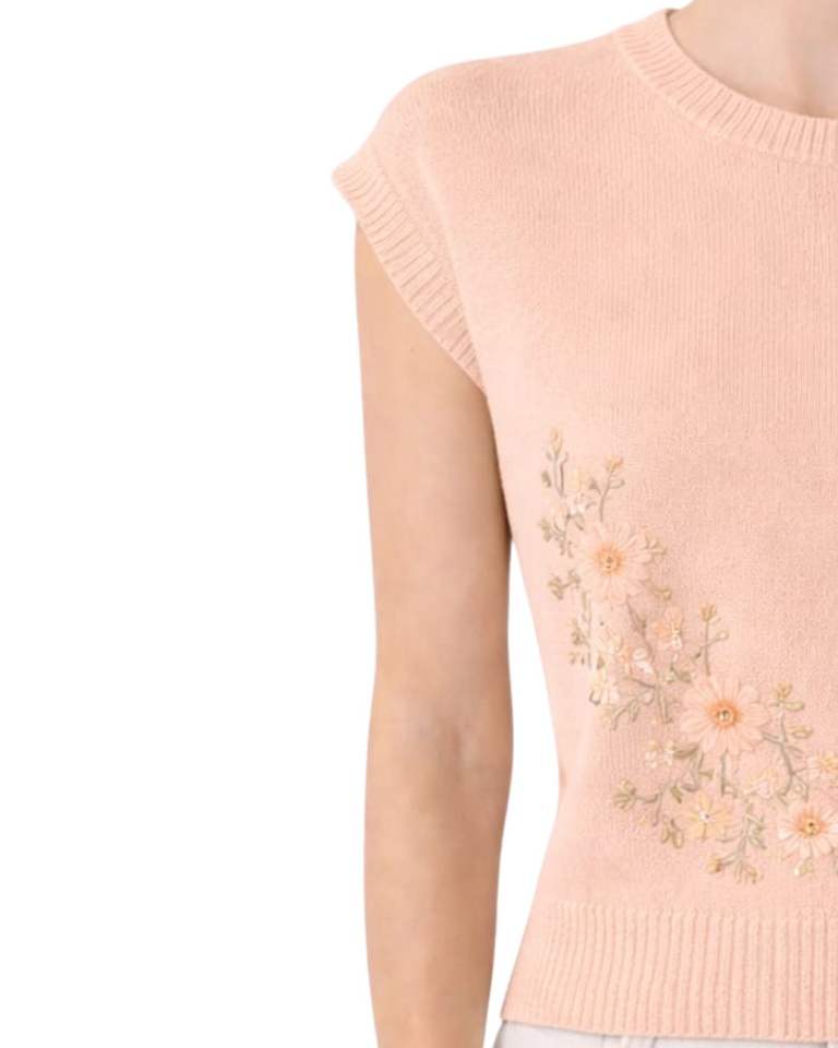 เสื้อสเวตเตอร์ถักแขนกุดผู้หญิงลายดอกไม้ปักลาย คอกลม เนื้อผ้านุ่ม น้ำหนักเบา สไตล์ลำลอง เหมาะสำหรับฤดูร้อน ดีไซน์หรูหรา ทันสมัย