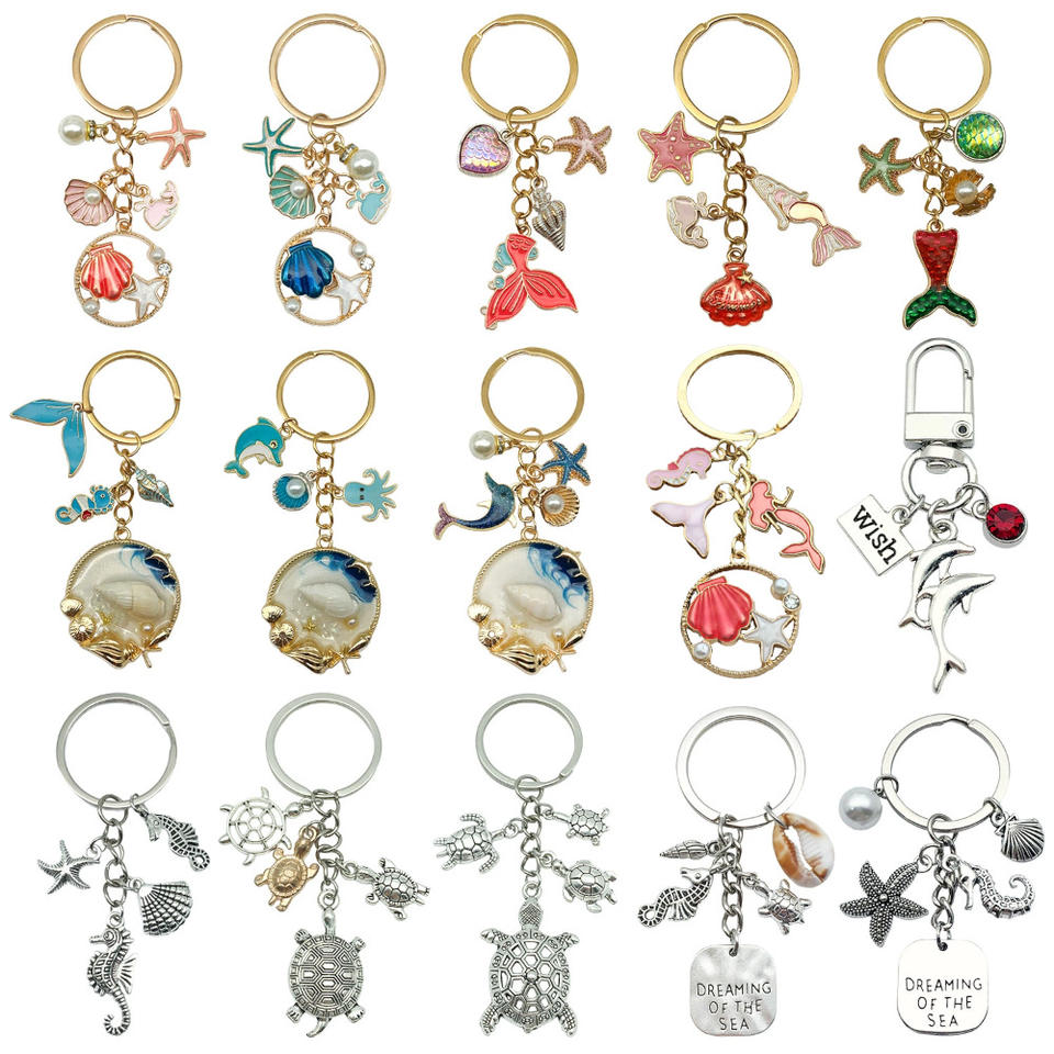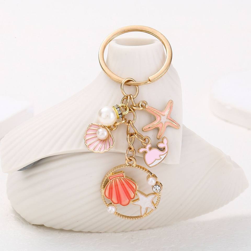 พวงกุญแจเปลือกหอยมุกแบบกำหนดเอง พวงกุญแจโลหะผสมน่ารัก แฟชั่นซีรีส์มหาสมุทร พวงกุญแจเด็ก จี้ห้อยกระเป๋า