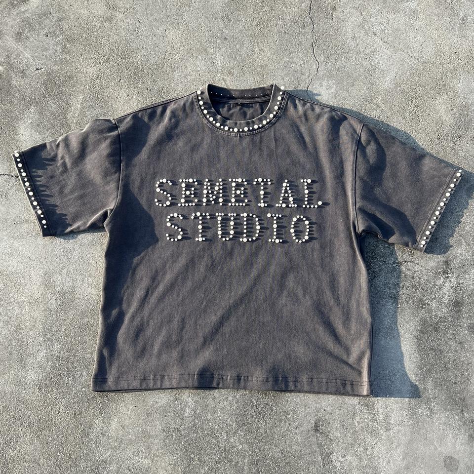 ผู้ผลิตเสื้อผ้าสตรีทแวร์แบบกำหนดเอง เสื้อยืดทรงบ็อกซี่ผ้าฝ้ายเนื้อหนาคุณภาพสูง เสื้อยืดโอเวอร์ไซส์ประดับคริสตัลแบบซักแล้ว