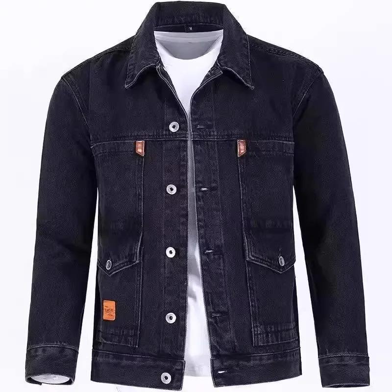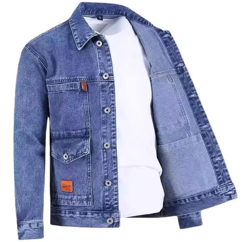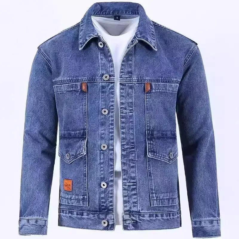 แจ็กเก็ตผู้ชายผ้าเดนิมผ้าฝ้าย100% ระบายอากาศได้ดีแจ็กเก็ตยีนส์ฟอกทันสมัยแบบกำหนดเอง