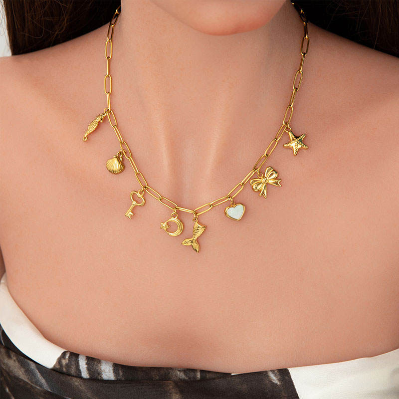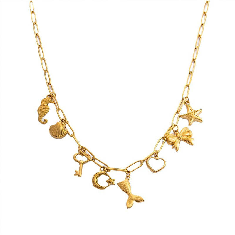 จี้ห้อยคอสั่งทำพิเศษ สแตนเลสสตีล 316L ชุบทอง 14K 18K PVD เครื่องประดับแฟชั่นสวยหรู สร้อยคอรูปทะเลสำหรับผู้หญิง