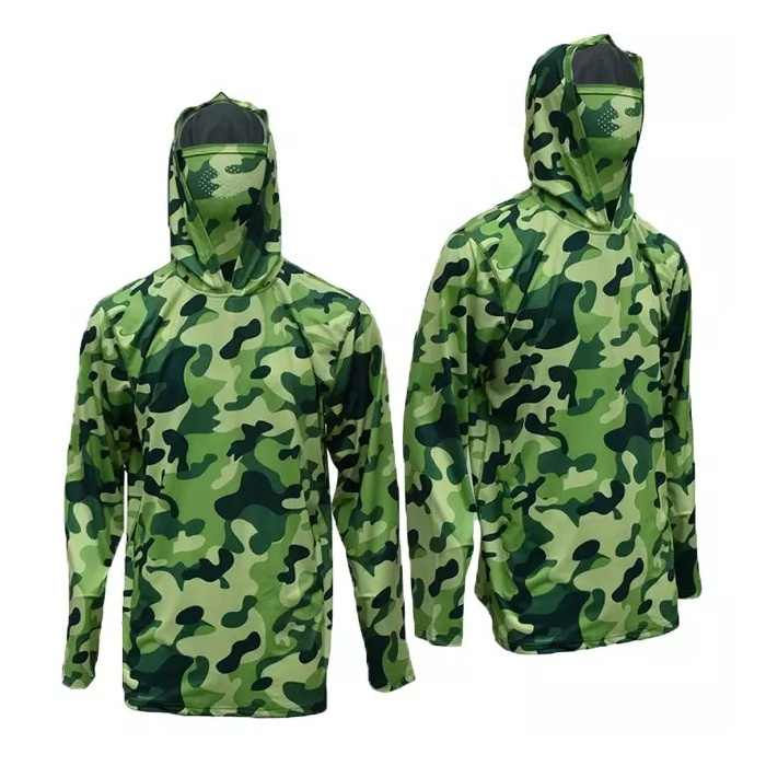 เสื้อเจอร์ซีย์ตกปลาแบบกำหนดเองสำหรับผู้ชาย ปี 2026 เสื้อผ้าตกปลา เสื้อฮู้ดแขนยาวพร้อมผ้าคลุมคอ