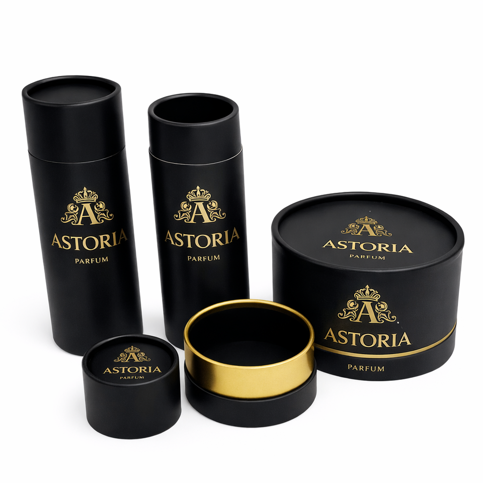 กล่องน้ำหอมแบบกำหนดเอง กล่องกระดาษแข็งทรงกระบอก ปั๊มฟอยล์ทอง บรรจุภัณฑ์ของขวัญพรีเมียมสำหรับขายปลีก โลโก้สั่งทำได้ ขายส่ง