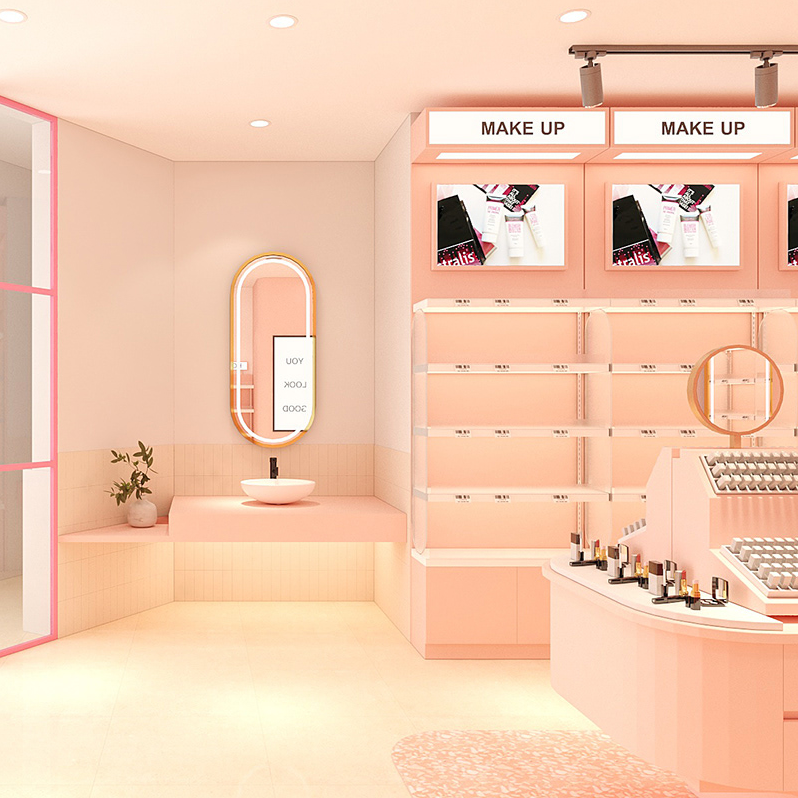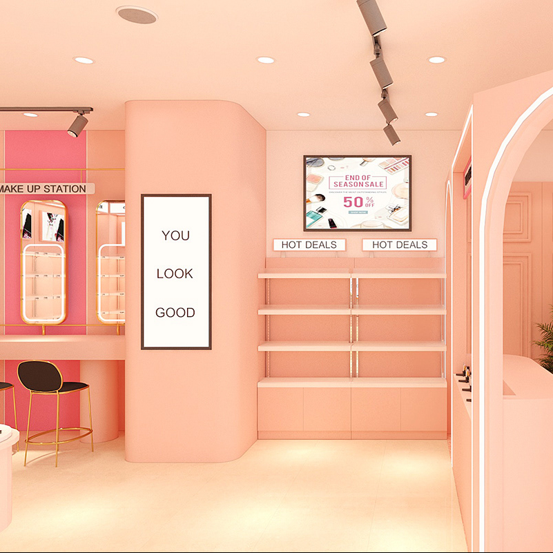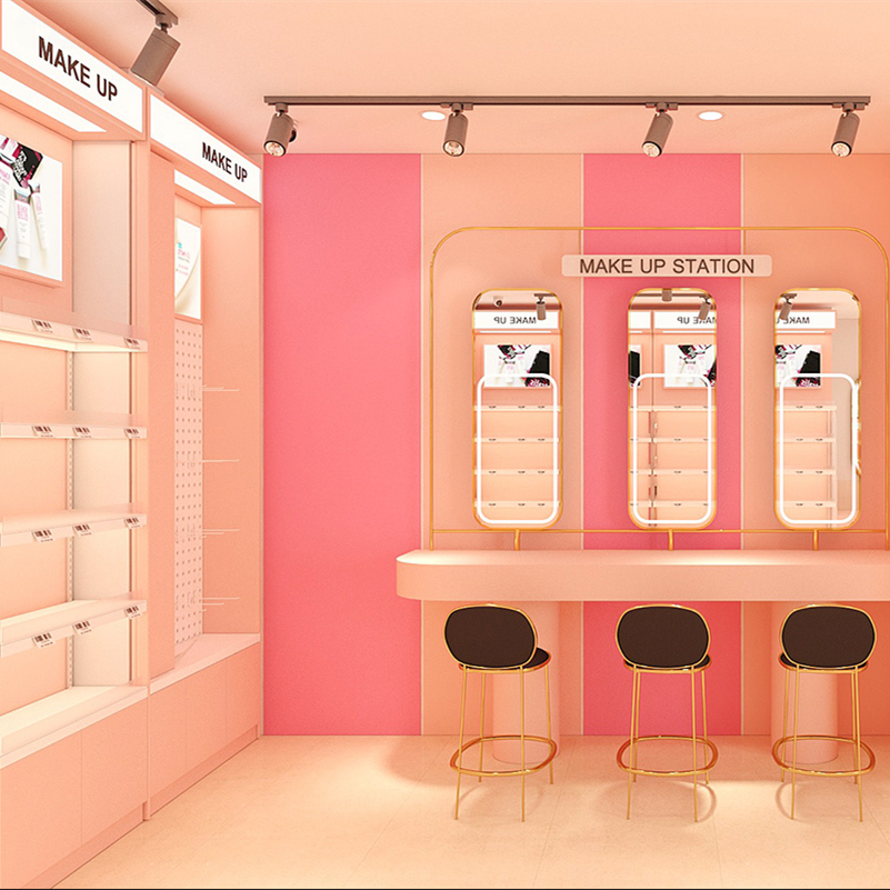 ชั้นวางแสดงเครื่องสำอางตามสั่งหัวเรื่อง