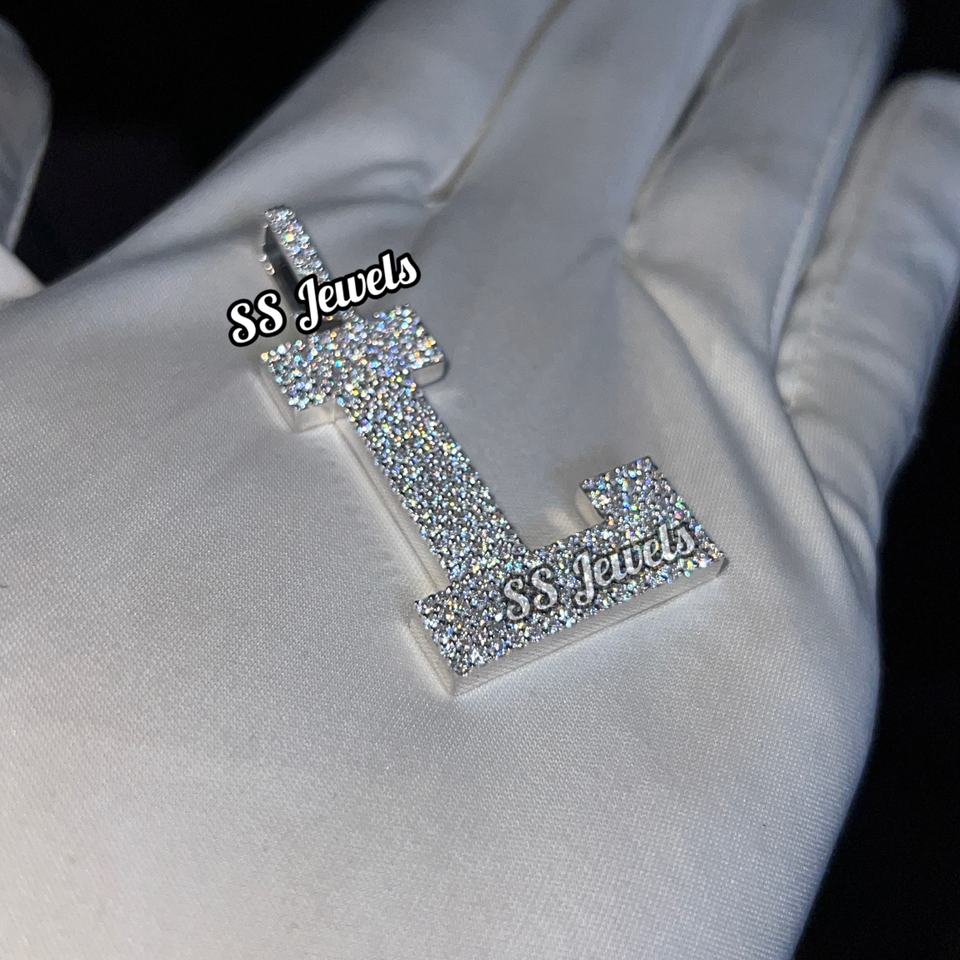 จี้ห้อยคอแบบฮิปฮอป ตัวอักษร/โลโก้สั่งทำพิเศษ ชุบโรเดียมเงินแท้ 925 ประดับเพชรโมอิสซาไนต์