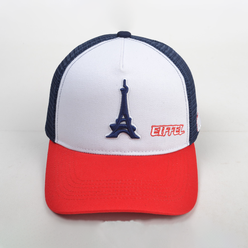 หมวกแก๊ปตาข่ายปักลายหอไอเฟล ออกแบบเองได้ ปรับขนาดได้ เหมาะสำหรับใช้เป็นของแจก