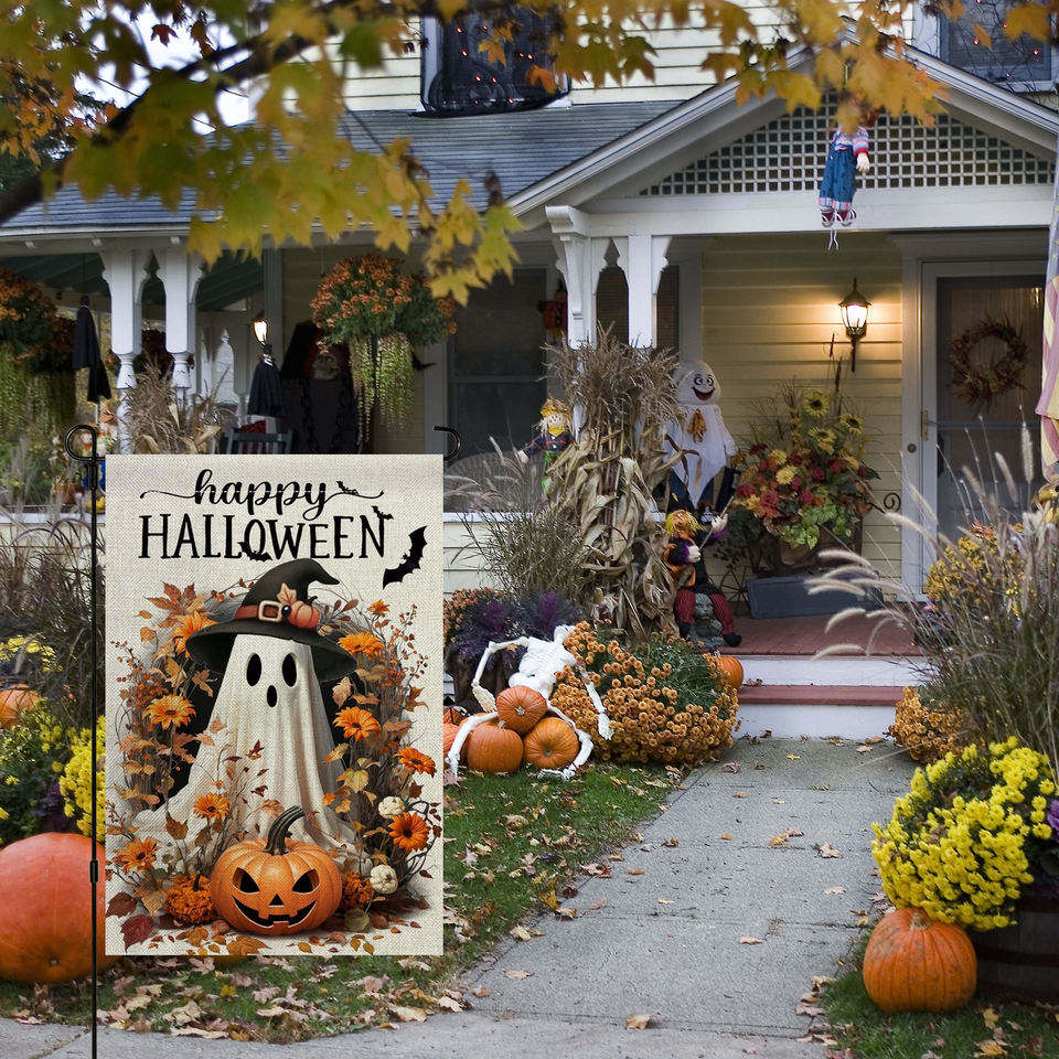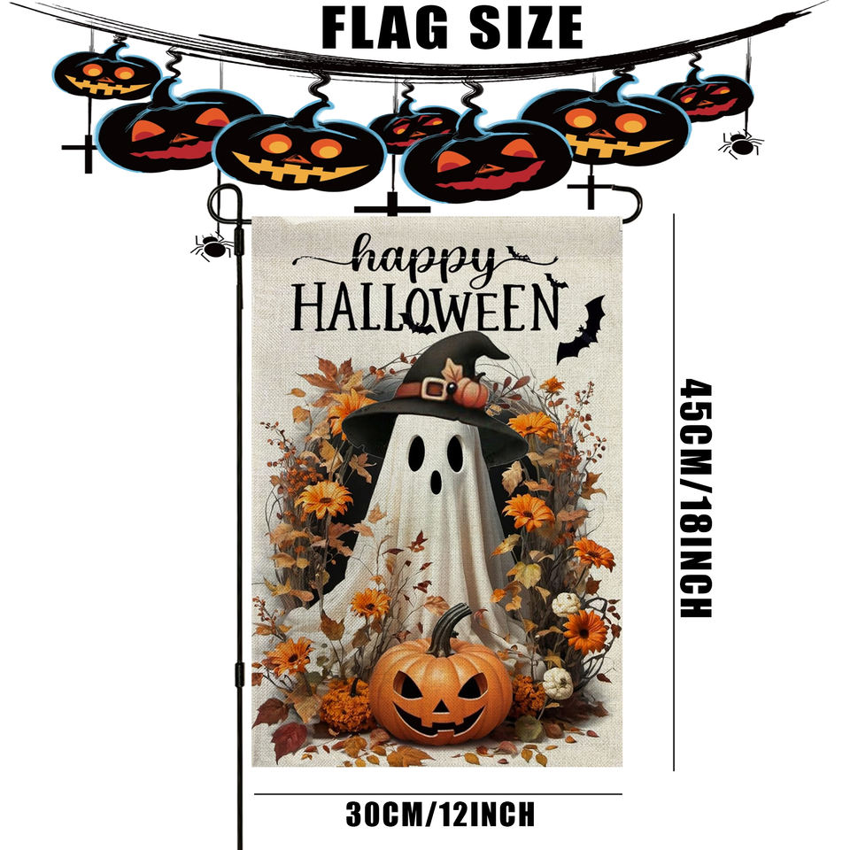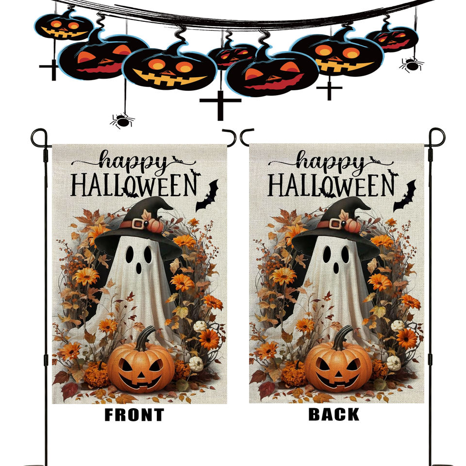 ชุดรูปแบบวันฮาโลวีนและเก๋ไก๋ธงสนามสนามสนามสนามสนามสนามสนามพิมพ์ซับลิเมชันสองด้านออกแบบได้ตามต้องการ