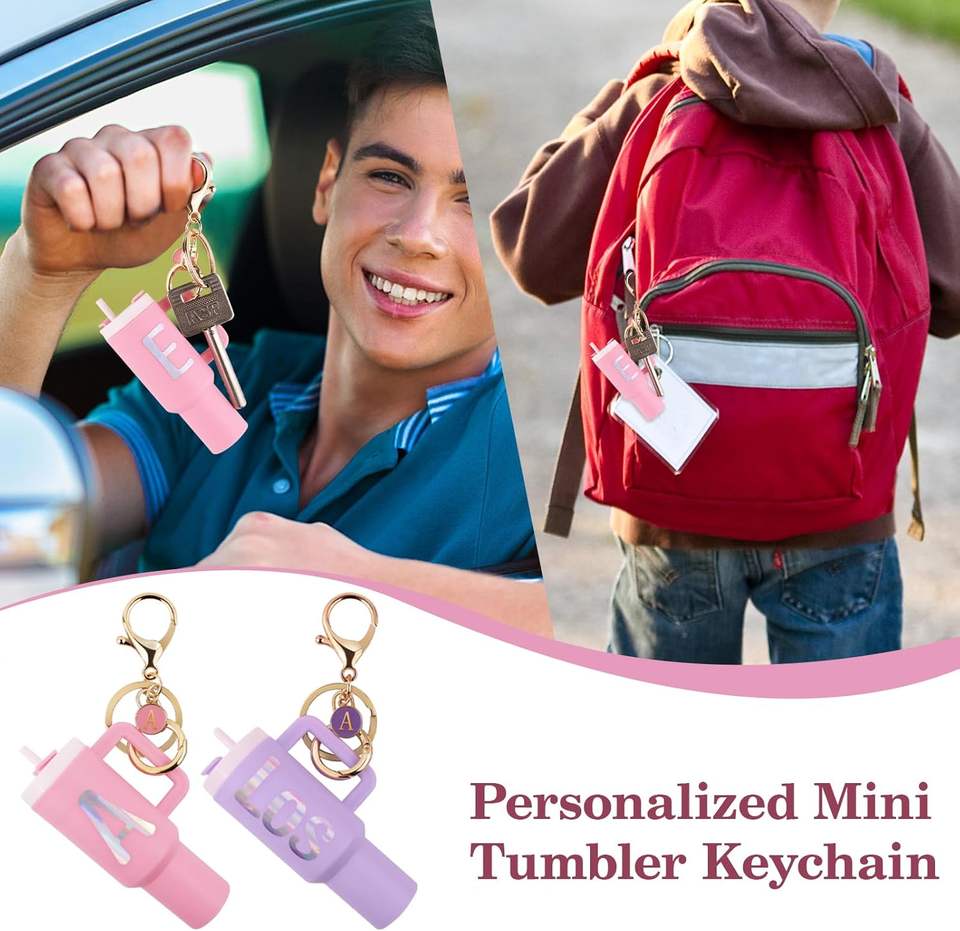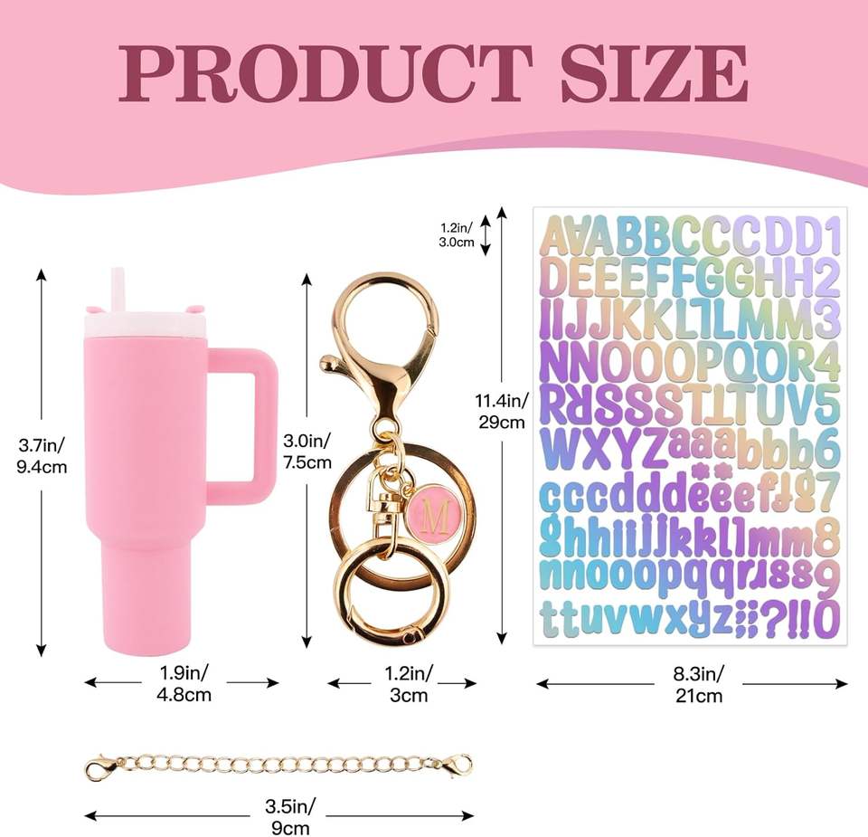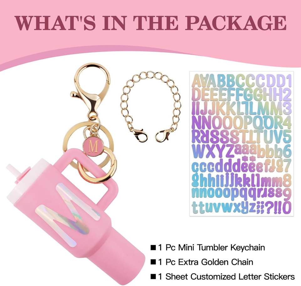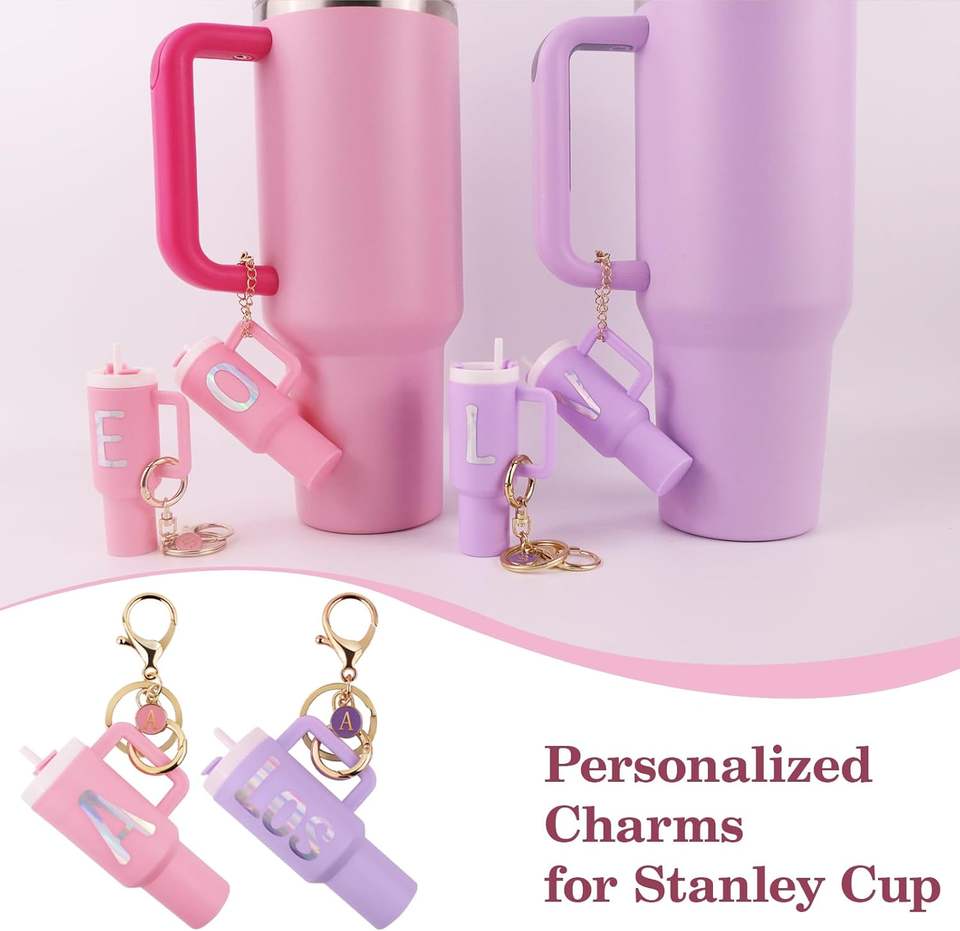 พวงกุญแจแก้วน้ำขนาดเล็กแบบกำหนดเองได้ ทนทาน สำหรับผู้หญิงและเด็กผู้หญิง พร้อมจี้ตัวอักษร DIY สำหรับตกแต่งแก้วน้ำและขวด