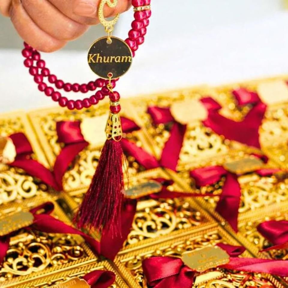คัมภีร์อัลกุรอานกำมะหยี่, ลูกประคำมุก, กล่องของขวัญสีทอง