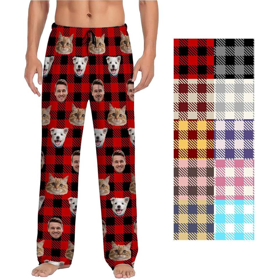 กางเกงนอนแบบสั่งทำพิเศษสำหรับทุกเพศ ลายภาพถ่าย/ใบหน้า ออกแบบเองได้ - ของขวัญคริสต์มาส/วันวาเลนไทน์ที่สมบูรณ์แบบสำหรับผู้หญิง ผู้ชาย และสัตว์เลี้ยง