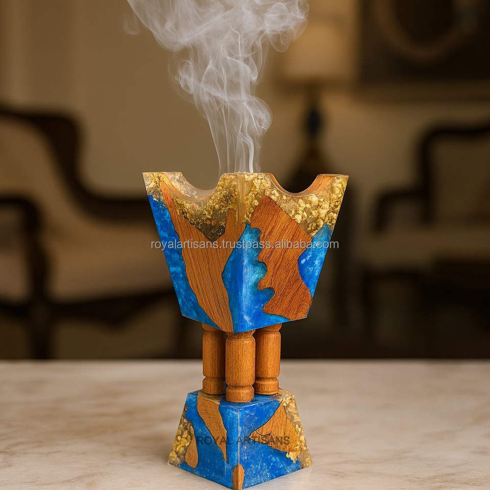 Custom Personalized Islamic Epoxy Bakhoor Burner Pine Wood Resin Incense Holder Eco-Friendly ROYAL ARTISANS Ramadan Gift Kuwait