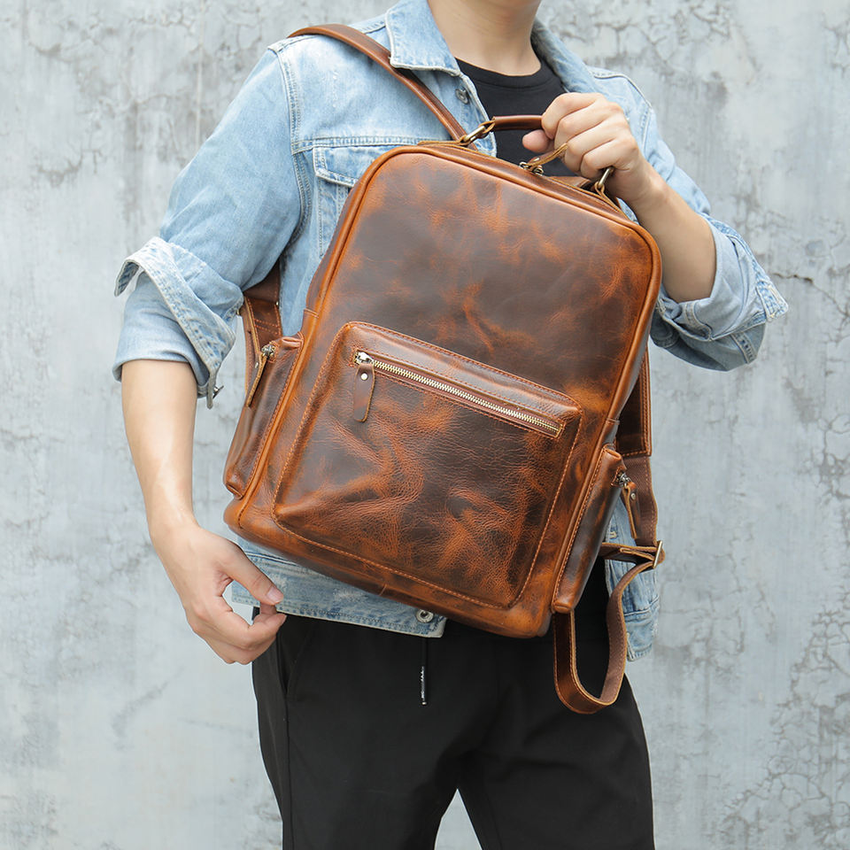 กระเป๋าเป้สะพายหลังผู้ชายอเนกประสงค์แบบสั่งทำพิเศษ หนังแท้ Crazy Horse สำหรับเดินทางและใส่แล็ปท็อป