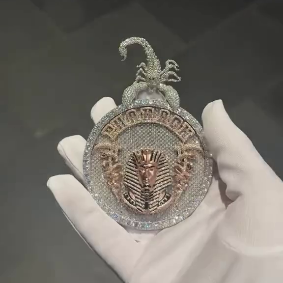 จี้ฟาโรห์ที่กำหนดเองพร้อมประกันตัวแมงป่อง | เงิน925 | VVS Moissanite | เครื่องประดับฮิปฮอปออกแบบเต็มรูปแบบ