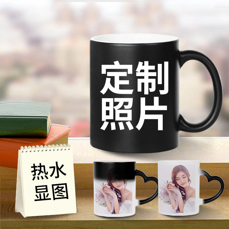 แก้วเปลี่ยนสีตามภาพสั่งทำ แก้วเซรามิกใส่น้ำร้อนพร้อมหูจับ แก้วเดี่ยวสำหรับคู่รัก ของขวัญสุดสร้างสรรค์