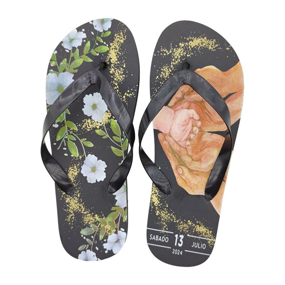 รองเท้าแตะพิมพ์ลายรูปภาพตามสั่ง ของที่ระลึกวันแต่งงาน รองเท้าแตะชายหาดลายดอกไม้ ของขวัญส่วนตัวจากโรงงาน