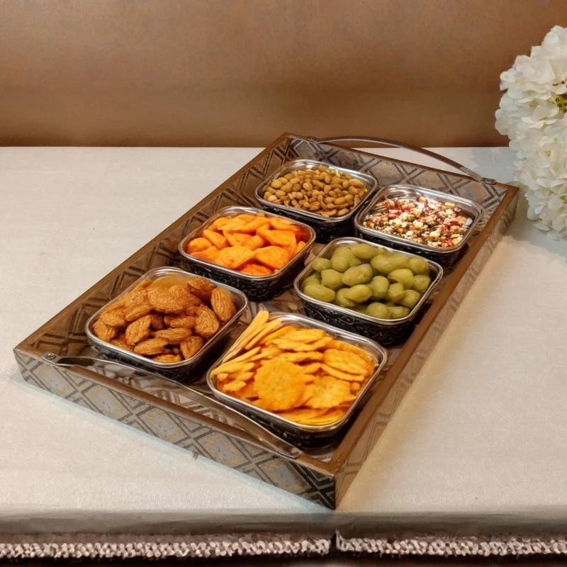 ถาดไม้ตกแต่งโต๊ะเสิร์ฟแบบสั่งทำ ชุดถาดดีไซน์เนอร์รุ่นล่าสุด ถาดไม้รูปทรงสี่เหลี่ยมผืนผ้าสำหรับตกแต่งบ้าน
