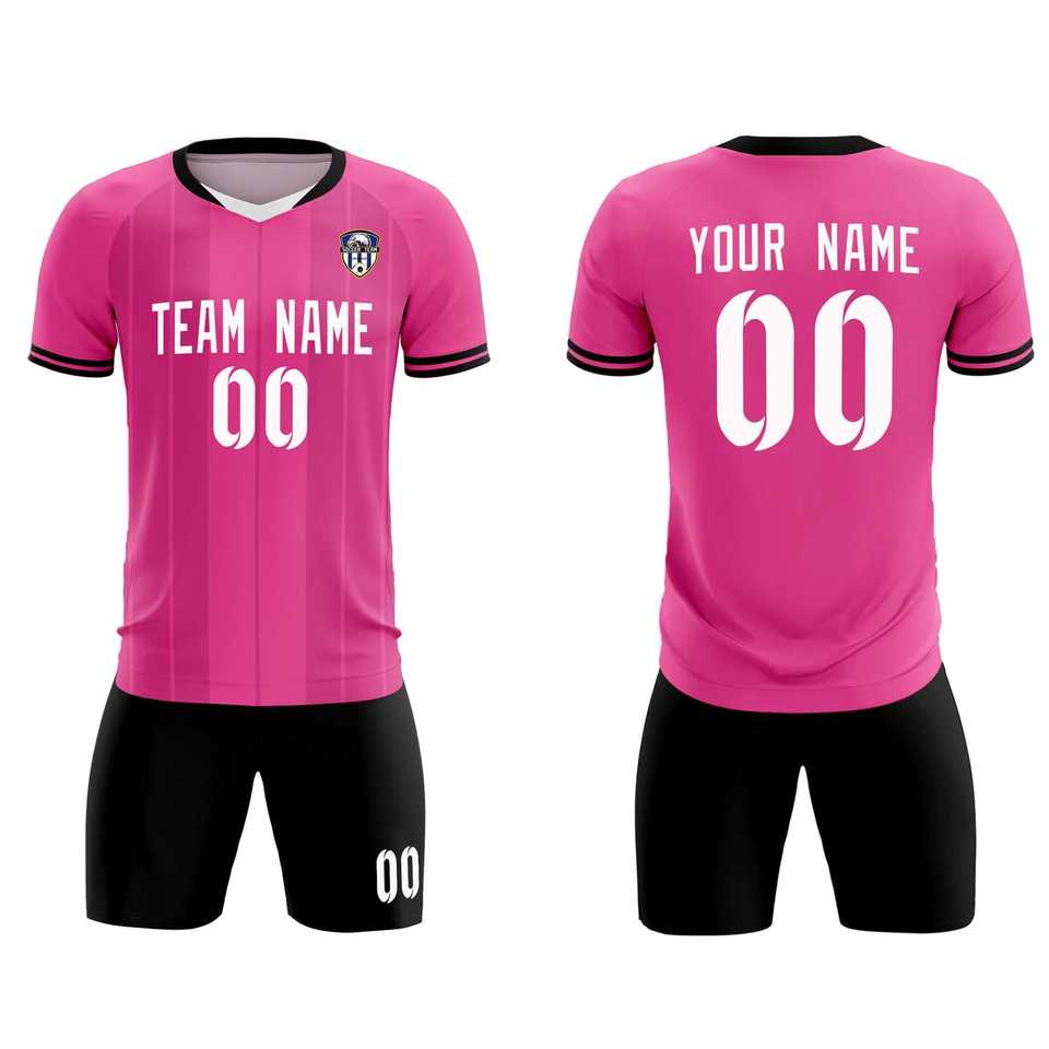 เสื้อฟุตบอล/ชุดฟุตบอลลายทางคลาสสิกสีชมพูแบบกำหนดเองได้