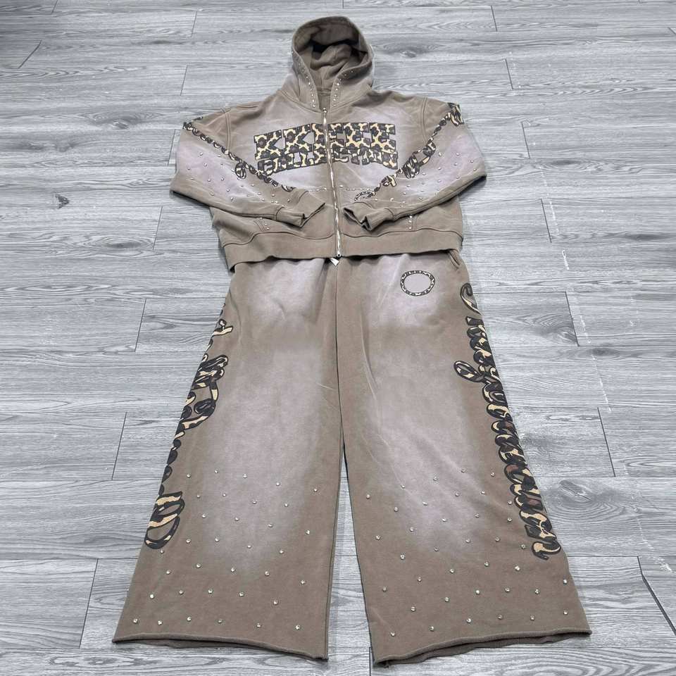ชุดเซ็ทฮู้ดดี้ซิปสีชมพูแบบดิสเทรสสำหรับผู้หญิง ชุดวอร์มออกกำลังกาย กางเกงจ็อกเกอร์ ชุดเซ็ทสองชิ้นผ้าฝ้าย