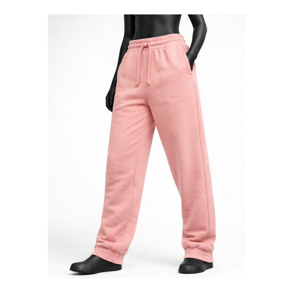 กางเกงวอร์มผ้าฟลีซสีชมพูแบบกำหนดเองสำหรับผู้หญิง เอวสูง มีเชือกผูกเอว ขอบเอวยางยืด ปลายขาจั๊มพ์ ขายส่งแบบ OEM