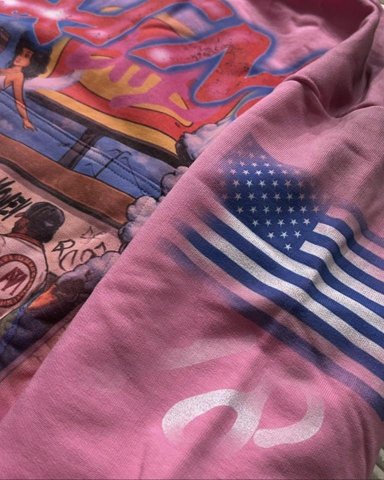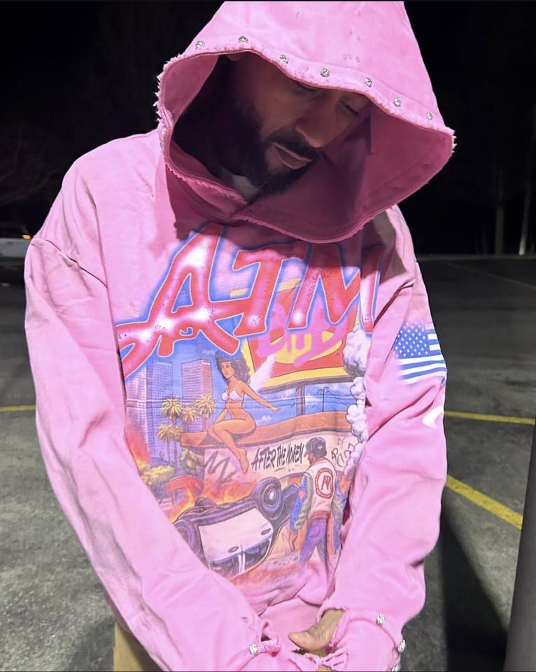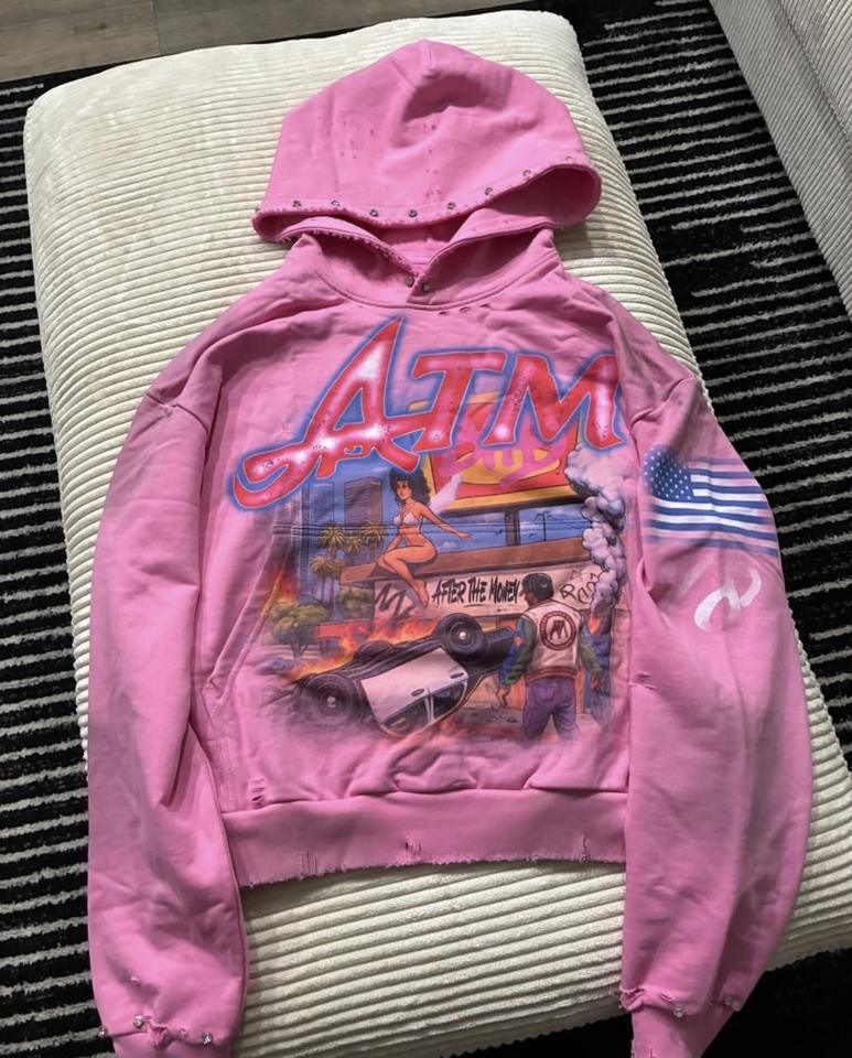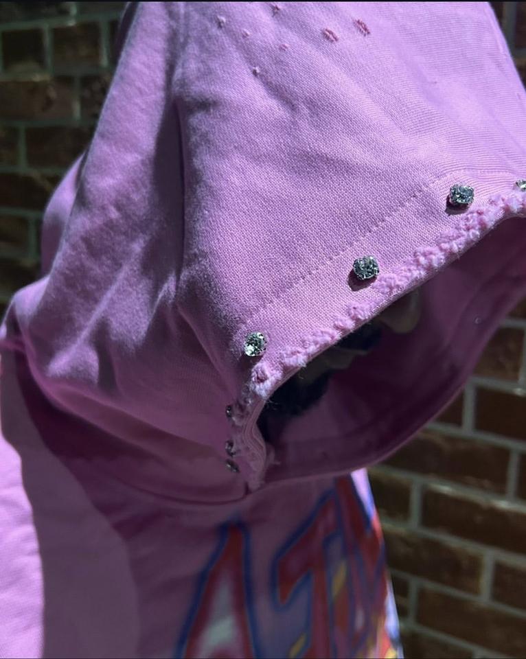 เสื้อฮู้ดดี้ลายกราฟิกสีชมพูแบบกำหนดเองสำหรับฤดูหนาว ทรงโอเวอร์ไซส์ สไตล์ดิสเทรส ผลิตจากวัสดุรักษ์โลก ระบายอากาศได้ดี สำหรับทั้งชายและหญิง ตกแต่งด้วยคริสตัล ผลิตจากผ้าฝ้าย 100%