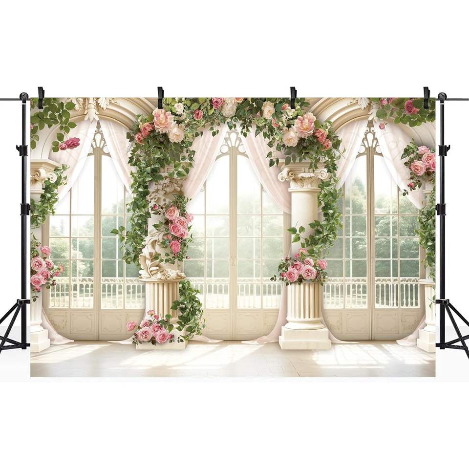ฉากหลังดอกกุหลาบสีชมพูใบไม้สีเขียวสำหรับงานแต่งงาน งานเลี้ยงฉลองสมรส ถ่ายภาพในสตูดิโอ คุณภาพพรีเมียม สต็อกจีน รุ่นพิเศษ