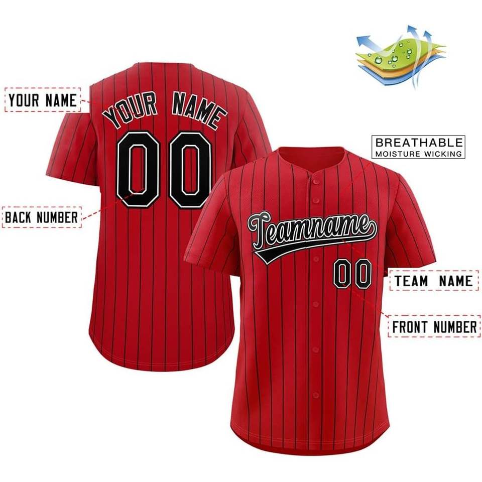 เสื้อเบสบอลปักลายที่กำหนดชื่อเองและจำนวนแถบสีแดง/ดำสำหรับผู้ชาย/ผู้หญิง/เยาวชน-22ขนาด