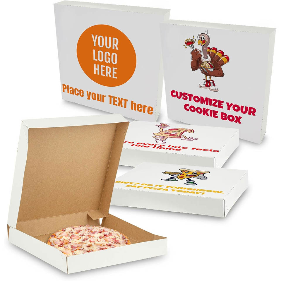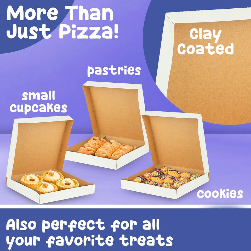 กล่องพิซซ่าสีขาวเคลือบด้วยดินเหนียว8 "x 8" x 1.5 "สำหรับพิซซ่ากล่องใส่ขนมพิมพ์โลโก้แบบเลือกได้ตามต้องการ
