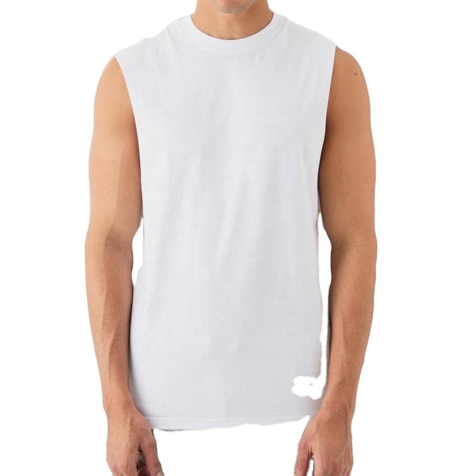 เสื้อยืดกีฬาผู้ชายแบบเรียบ ผ้าคอตตอนผสมสแปนเด็กซ์ 180 GSM เสื้อกล้าม Homme Tank Top