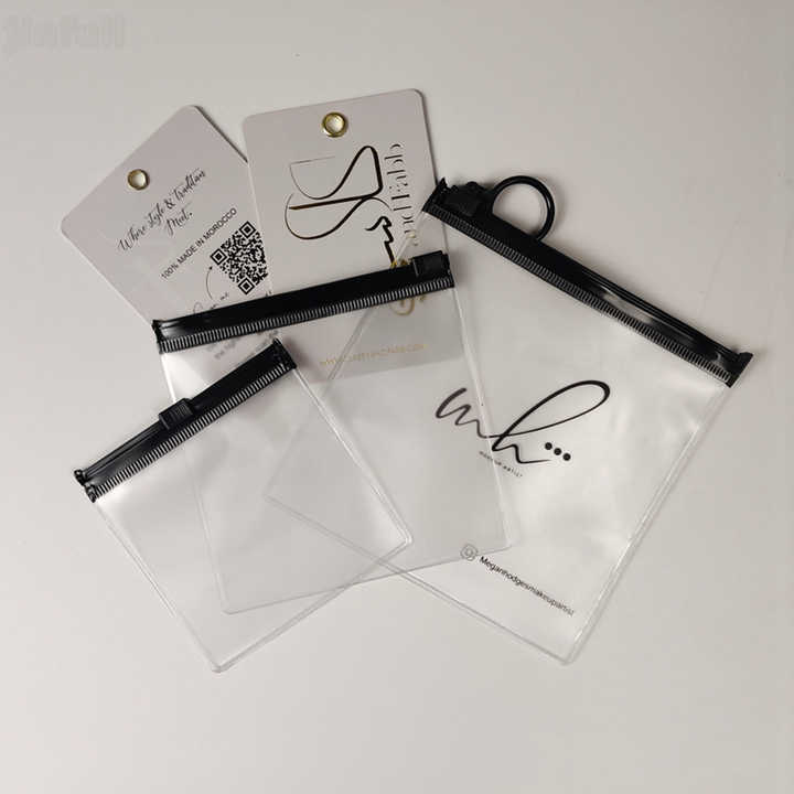 ถุงพลาสติกแบบกำหนดเองที่มีโลโก้ใสฝ้ามีซิปกระเป๋าเก็บฝุ่นกระเป๋าบรรจุภัณฑ์ขนาดเล็กสำหรับเครื่องประดับพีวีซี