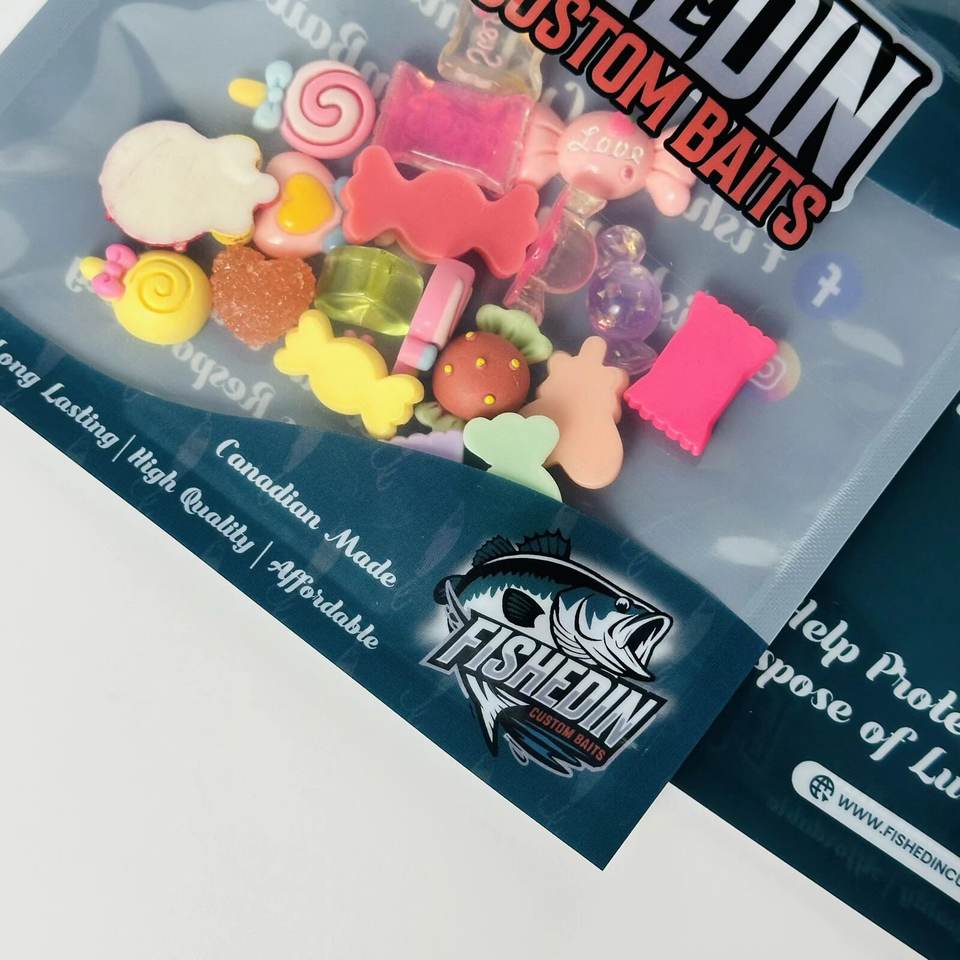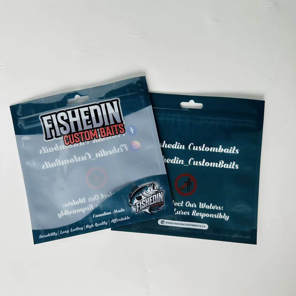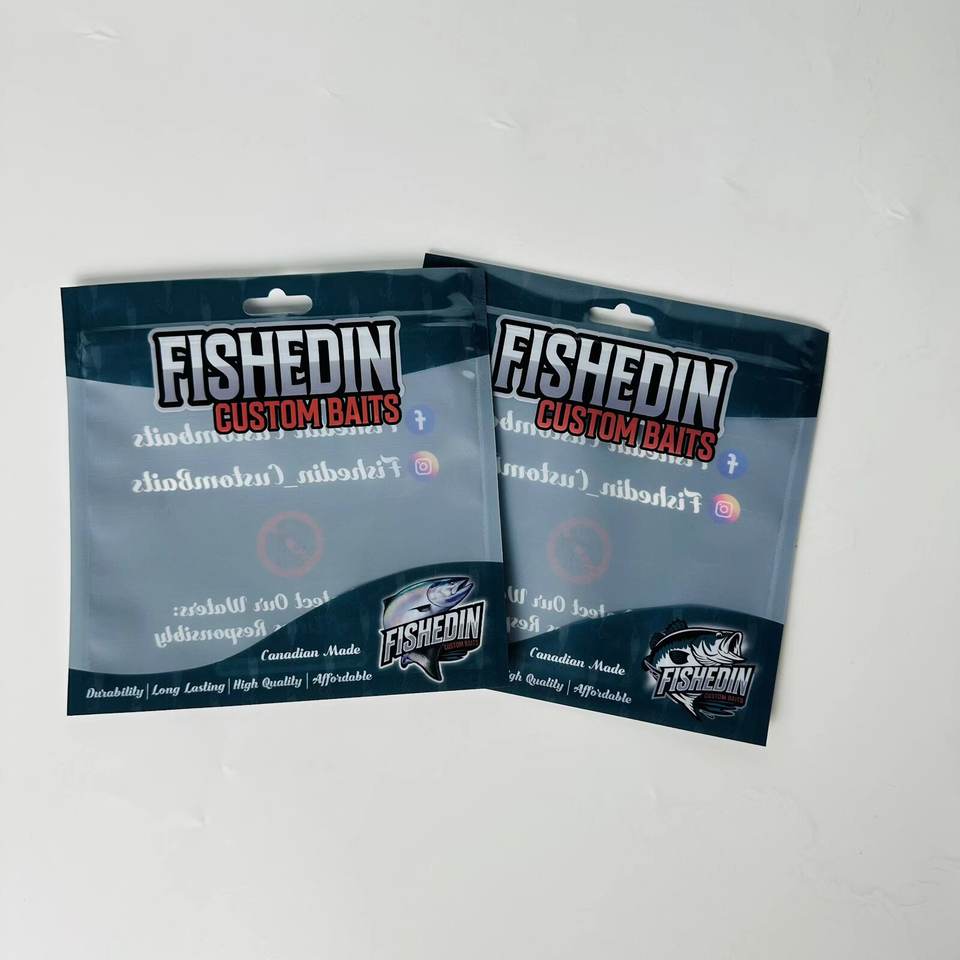 ถุงบรรจุภัณฑ์เหยื่อตกปลาพลาสติกแบบกำหนดเอง ถุงซิปล็อคแบบแบน ปิดผนึกได้ พร้อมรูรูดแบบยุโรป ดีไซน์ปิดผนึก 3 ด้าน