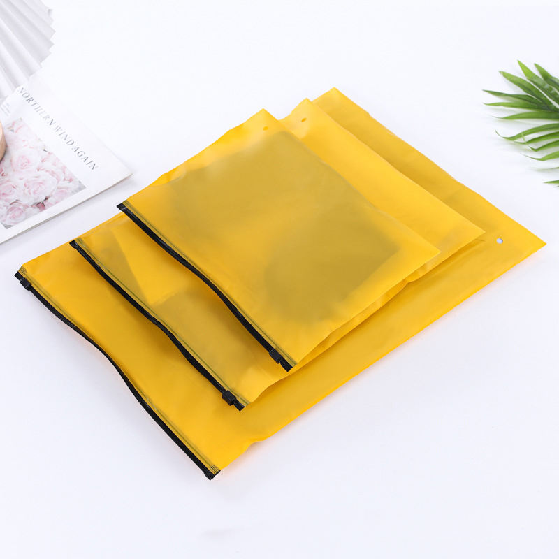 ถุงซิปล็อคพลาสติกพิมพ์โลโก้ตามสั่ง วัสดุรีไซเคิล สีเหลือง แข็งแรง ปลอดภัย สำหรับใส่เสื้อผ้า รองเท้า