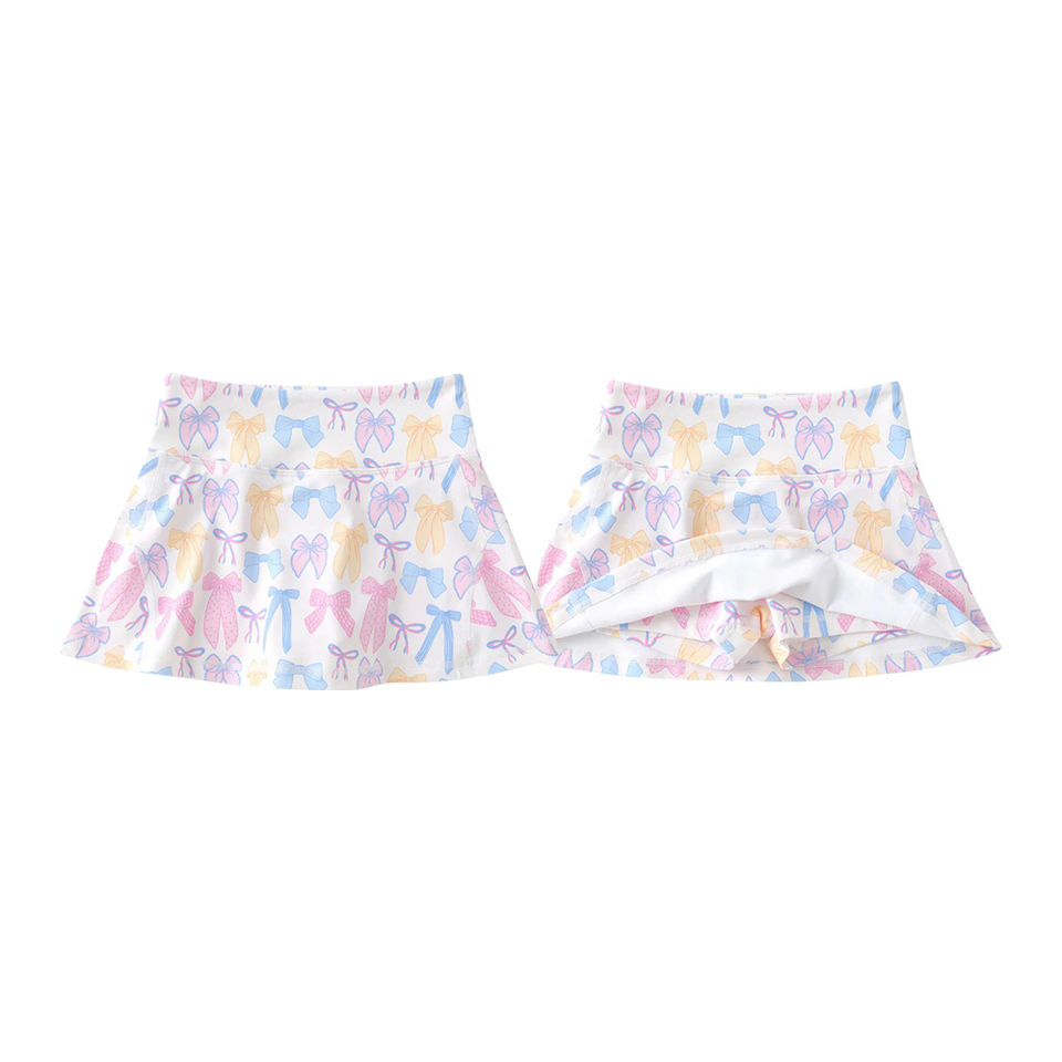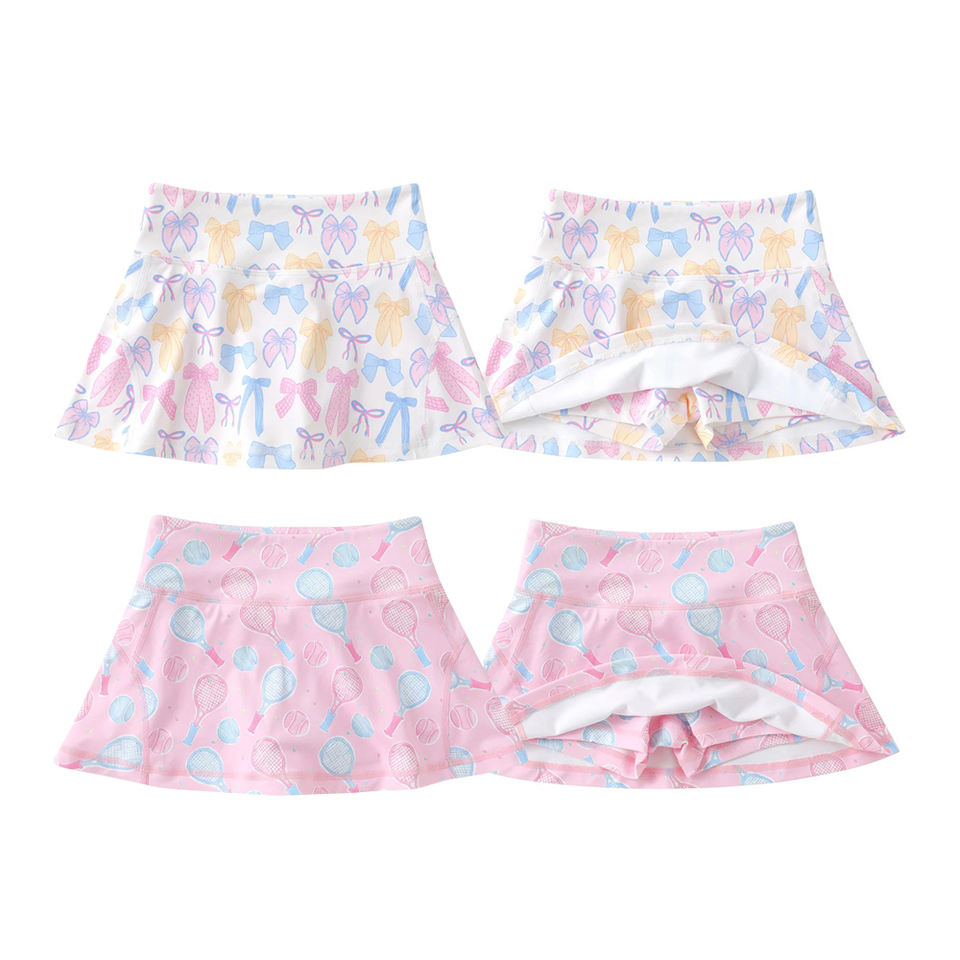 ชุดเทนนิสเด็กผู้หญิงแบบใหม่ ดีไซน์โบว์น่ารัก ผ้าสแปนเด็กซ์/โพลีเอสเตอร์ แห้งเร็ว เหมาะสำหรับเล่นกีฬา โยคะ และใส่ลำลอง