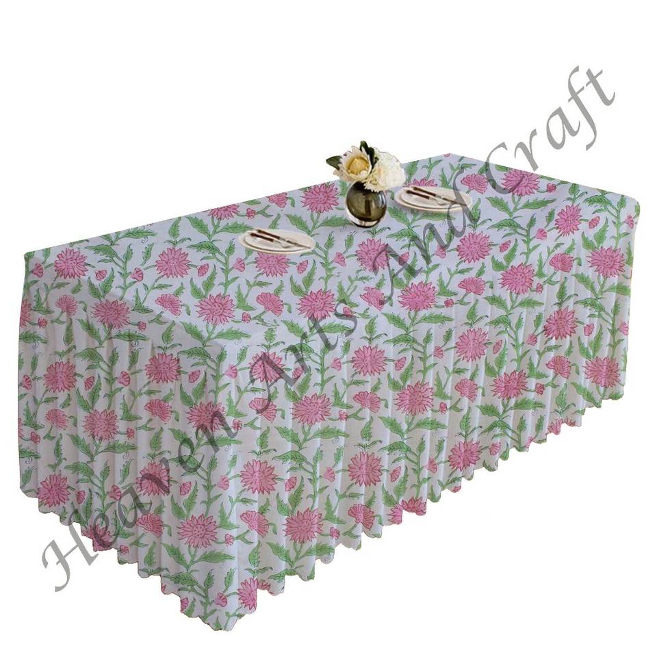 ผ้าปูโต๊ะผ้าฝ้ายแท้แบบมีจีบพิมพ์ลายบล็อกด้วยมือผ้าปูโต๊ะแบบไร้กาลเวลา