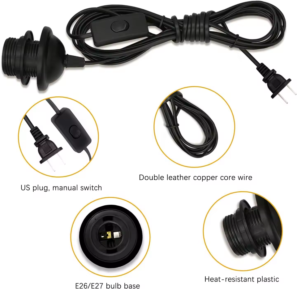 ชุดสายไฟแบบเสียบ/E27แบบแขวนสวิตช์เปิด/ปิดสำหรับเครื่องใช้ไฟฟ้าชุดสายไฟแบบห้อยติด E26