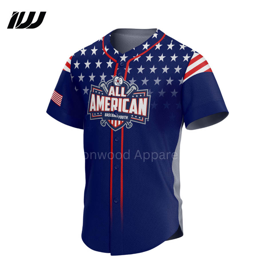 เสื้อเบสบอลแบบสั่งทำพิเศษ ไซส์พลัส คอวี ป้องกันแบคทีเรีย แห้งเร็ว แบบซับลิเมชั่น ขายดี