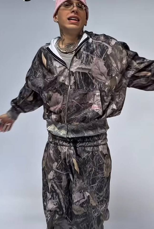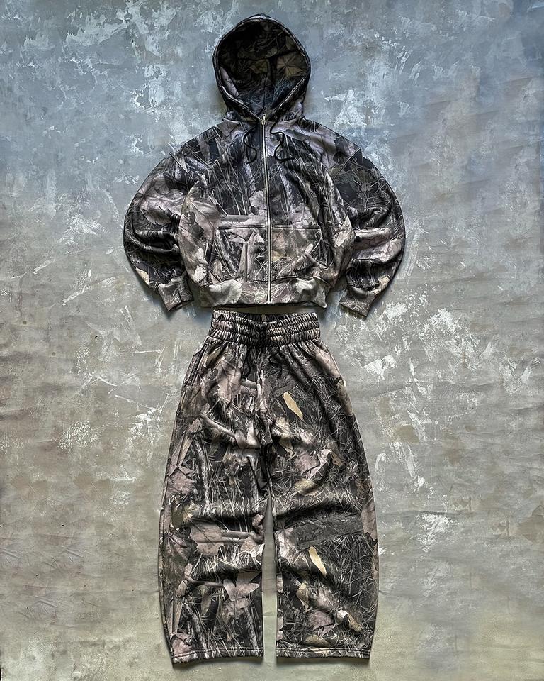 ชุดวอร์มกางเกงลายพรางสำหรับผู้ชายชุดวอร์มกางเกงขาบานลายพรางแนวสตรีทพิมพ์ลายพรางขนาดพลัสไซส์ออกแบบได้ตามต้องการ