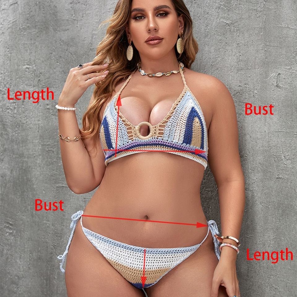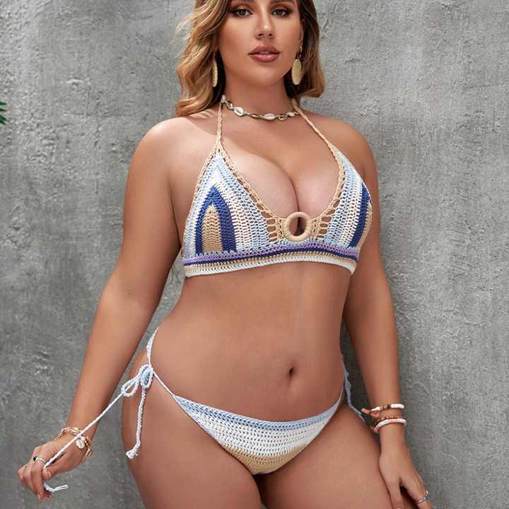 ชุดว่ายน้ำฟิตเนสไซส์พลัสแบบสั่งทำพิเศษ ชุดบิกินี่ถักโครเชต์ลายฉลุสำหรับวันหยุดพักผ่อนริมชายหาด ชุดบิกินี่ถักไหมพรมเซ็กซี่ ชุดว่ายน้ำสำหรับผู้หญิง