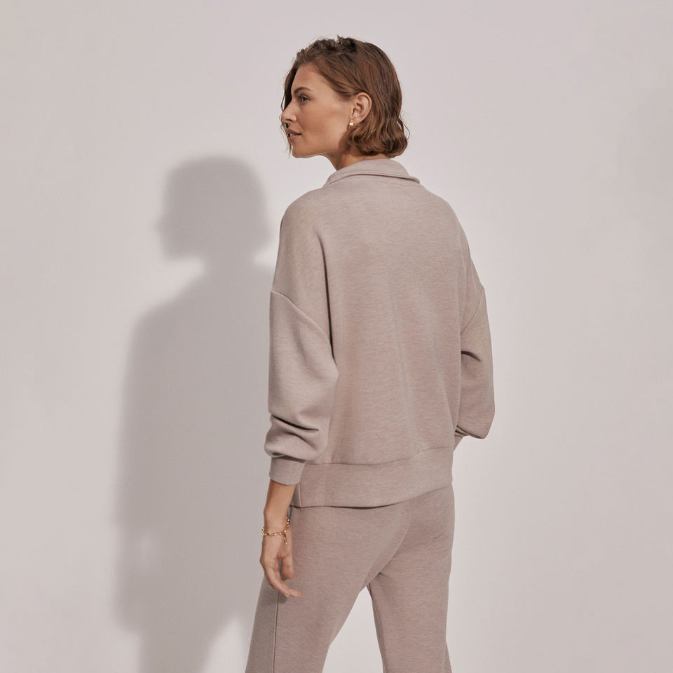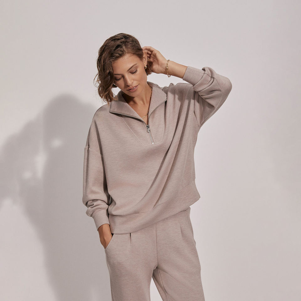 เสื้อฮู้ดดี้ซิปครึ่งตัวทรงโอเวอร์ไซส์สำหรับผู้หญิง