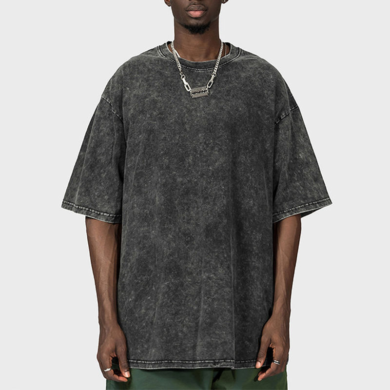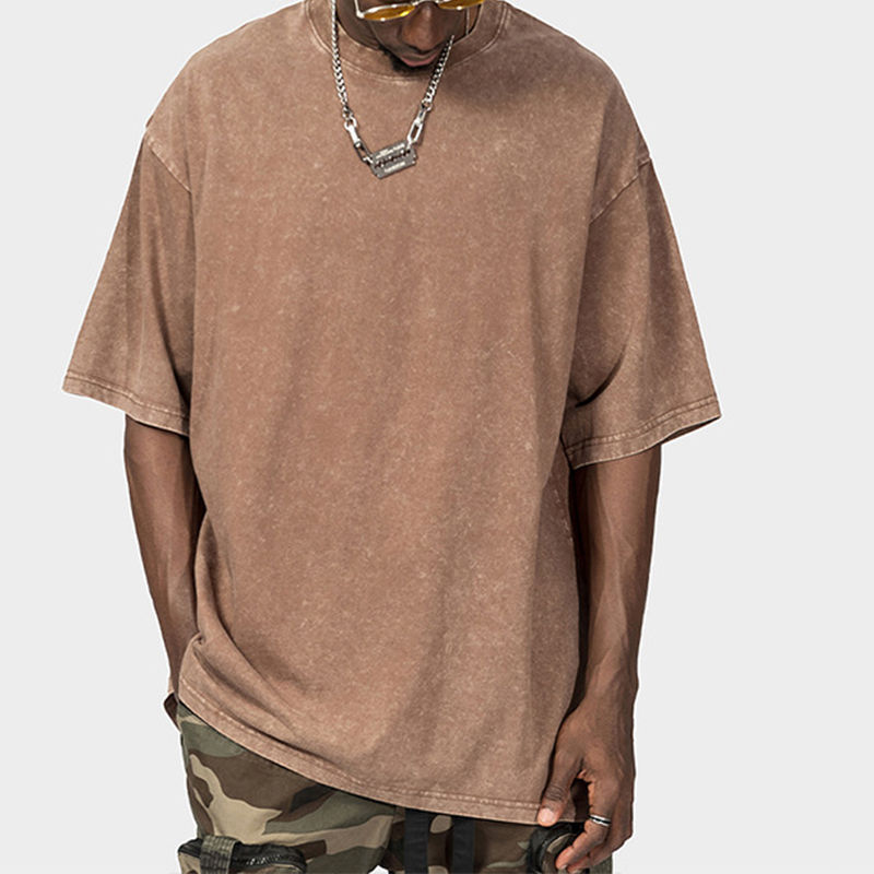 เสื้อยืดผ้าฝ้ายฟอกสีกรดสำหรับผู้ชายขนาดใหญ่พิเศษออกแบบได้ตามต้องการลายพระอาทิตย์จาง220กรัม100% ถักแบบถักทอสำหรับผู้ชาย