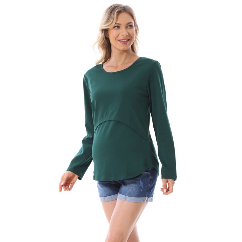 เสื้อยืดให้นมบุตรแขนยาวแบบคลาสสิกสำหรับฤดูใบไม้ผลิเสื้อผ้าให้นมบุตรขนาดพลัสไซส์ออกแบบได้ตามต้องการ
