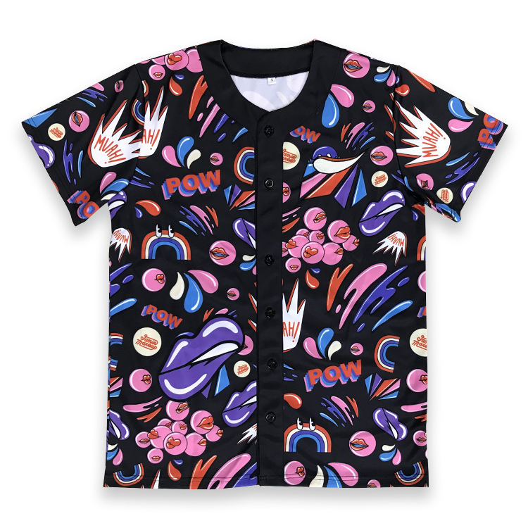 เสื้อเบสบอลสตรีทแวร์แบบสปอร์ต ไซส์พลัส ป้องกันรังสียูวี ผลิตจากผ้าสแปนเด็กซ์/โพลีเอสเตอร์ พิมพ์ลายด้วยเทคนิคฮีททรานเฟอร์ พร้อมกระดุมตกแต่ง