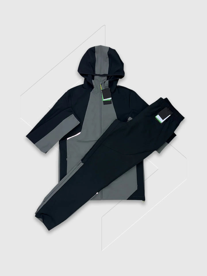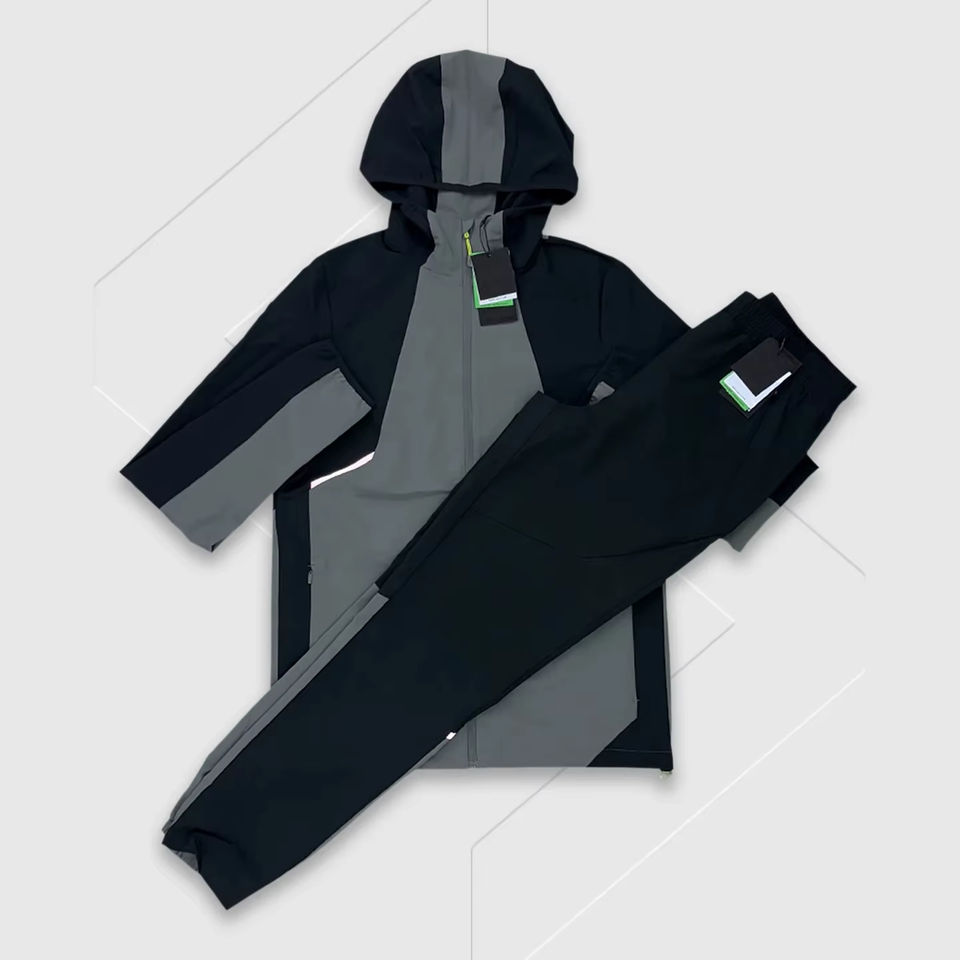 ชุดเสื้อกางเกงวอร์มมีฮู้ดสำหรับผู้ชายชุดวิ่งผ้าคอตตอนผ้าขนแกะสีตัดกันขนาดพลัสไซส์ออกแบบได้ตามต้องการ