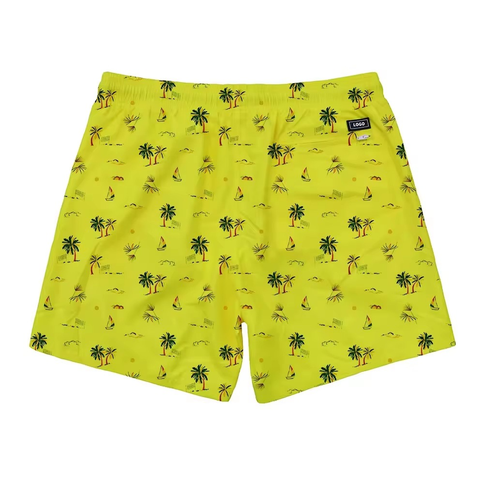 กางเกงว่ายน้ำชายแบบแห้งเร็วพิมพ์ลายฟิตเนส ระบายอากาศได้ดี เหมาะสำหรับว่ายน้ำและชายหาด